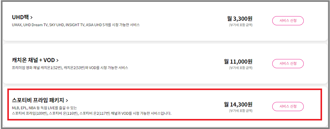 3. LG U Plus를 통한 SPOTV Now 가입 방법