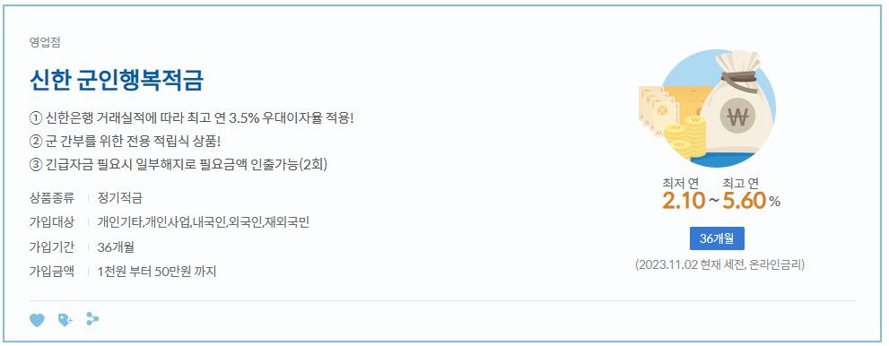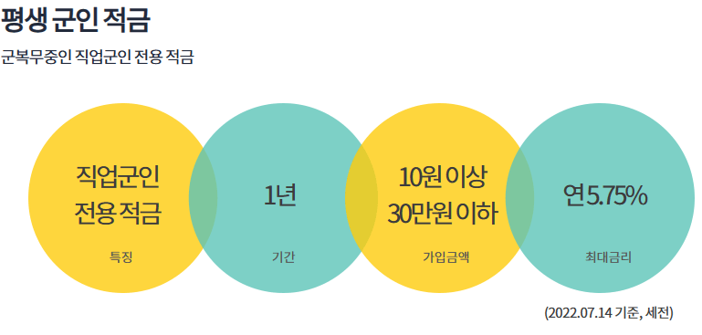 | 신한 군인행복적금 | 하나 평생군인적금 | 우리 장병내일준비적금 |