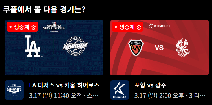 해외 스포츠 중계 국내 국가대표경기 실시간 쿠팡 플레이 티빙 무료 생중계 시청 방법 알아보기(ft.실시간 무료 라이브 티비 보기,해외스포츠중계,드라마,시사,다큐,영화,예능,키즈,뉴스 보기)