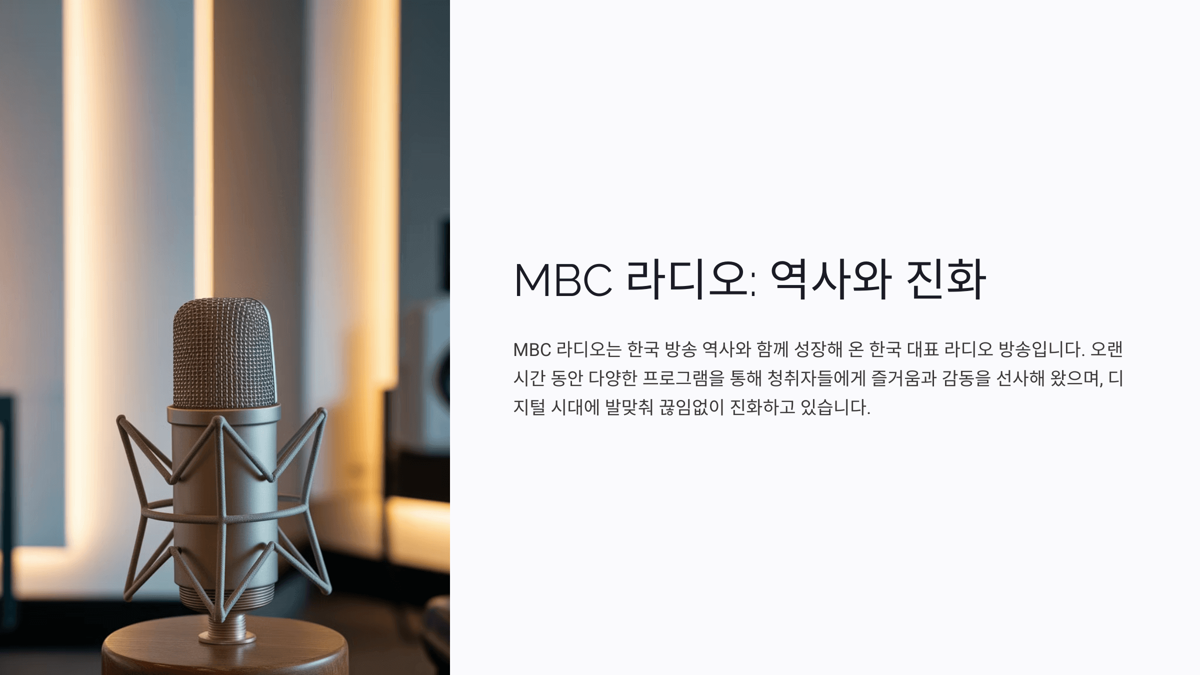 MBC 라디오는 시대 변화에 맞춰 디지털 환경에서도 새로운 시도를 이어가고 있어요. 팟캐스트와 유튜브 채널을 통해 과거