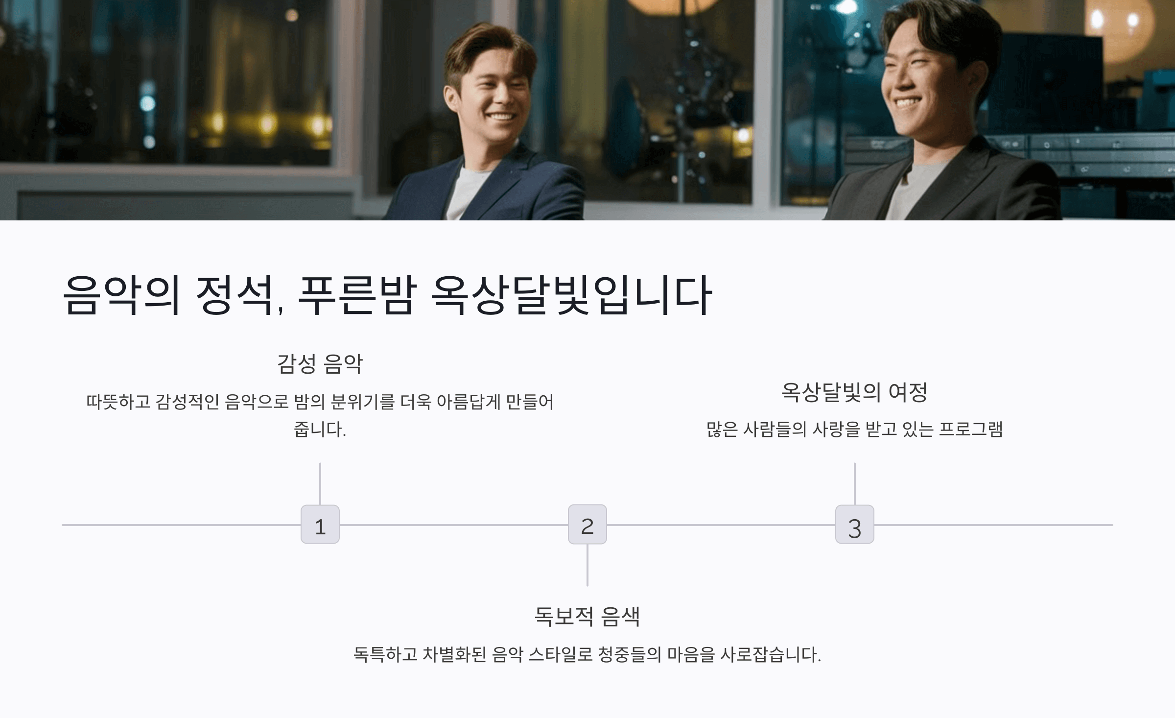 이와 함께, 진행자들은 개인적인 경험과 위트 있는 멘트를 통해 청취자들과 깊이 공감하며, 유대감을 형성합니다. 음악과 이야기, 그리고 따뜻한 소통의 조화는 '푸른밤, 옥상달빛입니다'를 밤 시간대 대표 프로그램으로 자리매김하게 합니다.