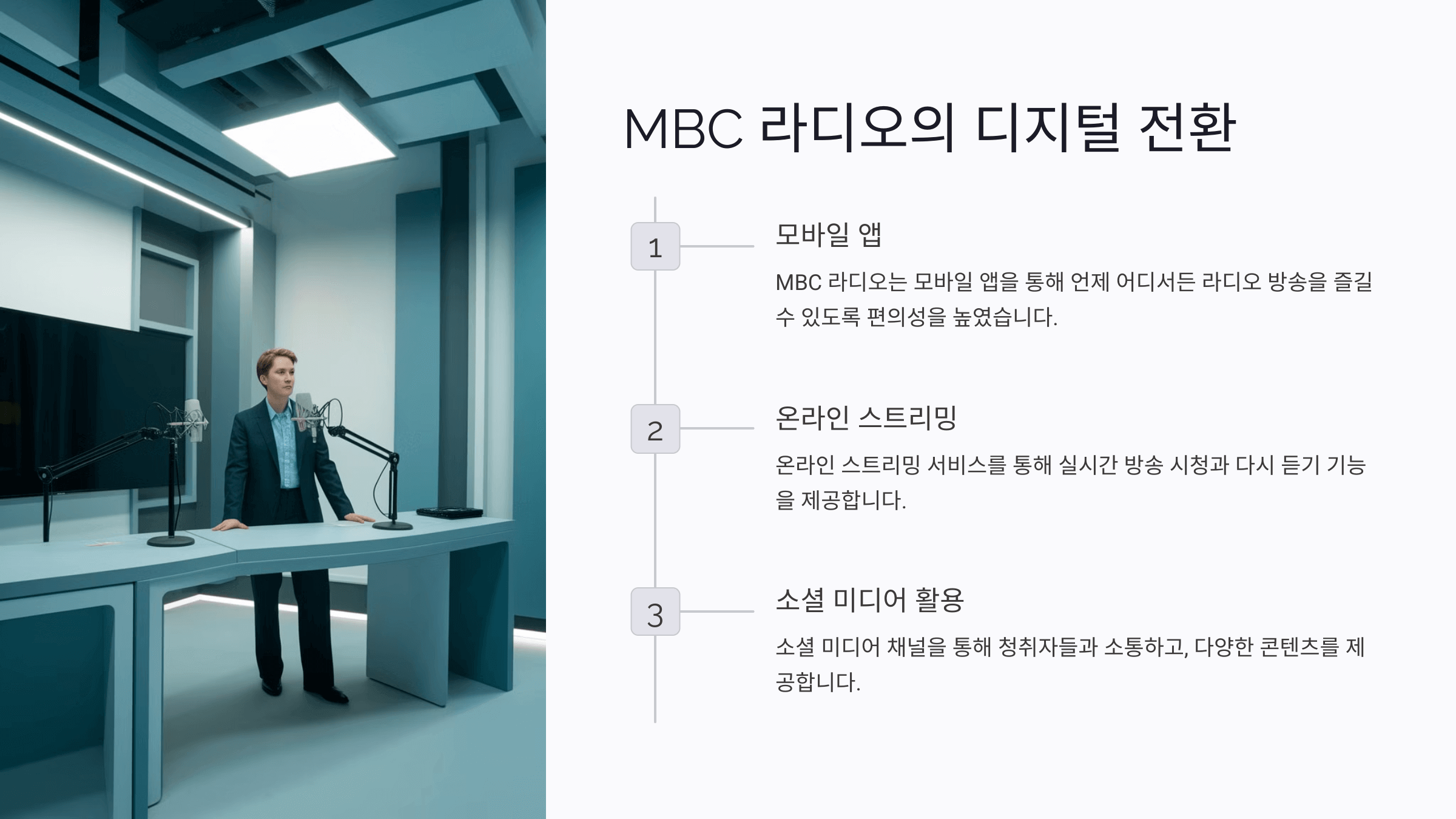 오늘날 MBC 라디오는 디지털 환경에 발맞춰 다양한 스트리밍 플랫폼을 통해 청취자들과 만나고 있어요. 과거에는 주파수를 맞춰 들었지만, 이제는 인터넷과 스마트폰으로 언제 어디서든 MBC 라디오를 즐길 수 있답니다. 이렇게 기술의 변화 속에서도 꾸준히 사랑받는 이유는 진정성 있는 방송 덕분이라고 생각해요.