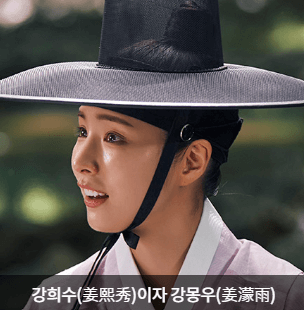 강희수(姜熙秀)와 강몽우(姜濛雨) 강항순의 딸. 도박을 좋아하는 여성. 세작. 어린 나이에 어머니를 여의고 양말을 신고 나라를 위해 달렸던 아버지의 아래서 자랐다. 부모의 보살핌 대신에 시녀에게 의지하며 살아왔다. 여러 면에서 부족한 양육 환경은 강희수가 가문의 여성들이 감히 품을 꿈꾸지 못하는 꿈을 꾸게 하고 비범한 삶을 살게 만들었다. 어렸을 때 아버지로부터 어깨 너머로 바둑을 배워서 게임의 전문가가 되었다. '한 수 두는 것으로 변화를 가져올 수 있다'며 자근년을 설득하고, 자신을 무시하며 '바둑의 이름도 몰라'고 하며 자신을 남자로 위장하여 용감하게 세상에 나갔다. '신의 상태'를 깰 때마다 도박꾼들을 때리며 시장에서 '사냥꾼'으로 명성을 얻었고, 얻은 부를 사용하여 청나라로 끌려간 사람들의 송금금을 제공했다. 그는 지는 것을 싫어하며 지루함을 더욱 싫어한다. 그녀는 한 수를 두면 결코 지지 않고, 한 번 이기면 결코 같은 상대와 다시 경기를 하지 않는다. 결혼에 관해서도 같은 신조를 갖고 있다. 그녀는 어릴 때부터 자신을 이길 수 없는 남자와 결혼하지 않겠다고 다짐했다. 자근년이 강희수의 배우자로 여기는 직면한 고집 센 김명하조차도 이 신조를 깨지 못했지만, 강희수의 신조를 일격에 깨는 그녀의 남자가 나타난다. 조선의 왕자 진한 이인. 고귀한 남자가 강희수의 방어선을 뚫고 주저 없이 다가와, 강희수는 그를 심지어 깨닫지 못하고도 무력하게 그에게 빠져든다. 세상이 리인을 의심하고 비난할 때, 강희수는 그가 환각에 휩쓸리지 않는 강인한 사람이라고 단호히 믿는다. 그 신념은 리인이 반역의 혐의를 받을 때라도 흔들리지 않았으며, 리인의 결백을 외치기 위해 자신의 목숨뿐만 아니라 친구 홍장의 목숨까지도 건드릴만큼 강력했다. |